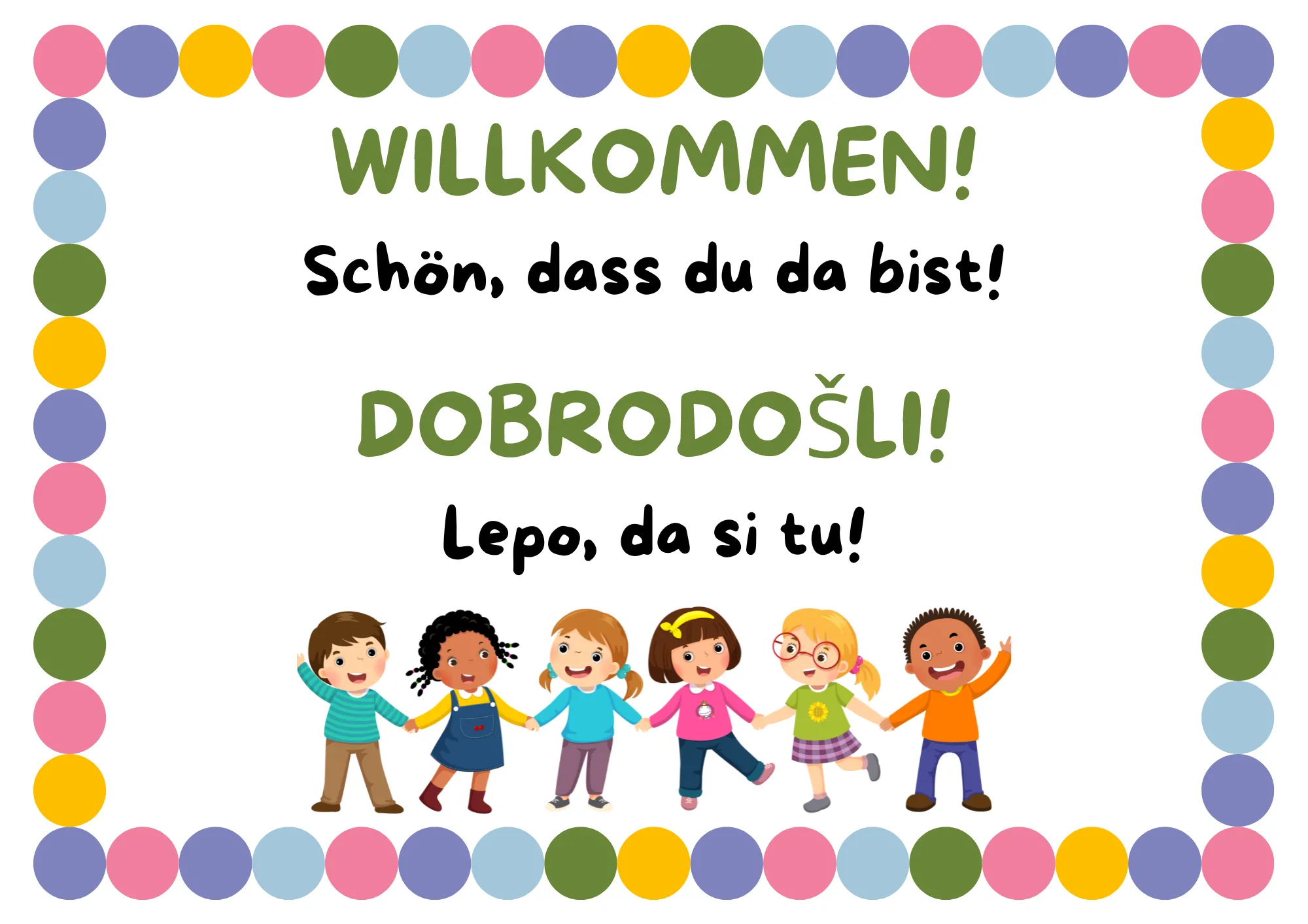Ponujamo vam edinstveno priložnost , da vašega otroka od prvega leta do desetega leta starosti spremljamo v obeh deželnih jezikih. Skupaj z Univerzo v Celovcu smo razvili jezikovno pedagoški koncept, ki je primeren za naš vrtec in nas vodi pri vsakodnevnem vzgojno-izobraževalnem delu.